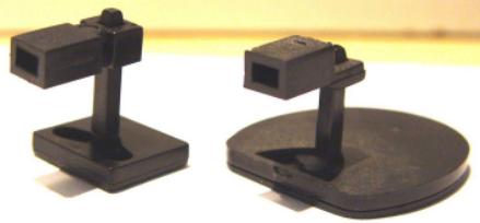 Le cas du dispositif SIMOBA : cette marque a sorti il y a quelques années des petits dispositifs permettant d'équiper les anciens wagons non équipés de timon à élongation. Il s'agit donc d'une plaque que l'on fixe sous le wagon sur lequel pivotera le boîtier NEM dans lequel on enfichera la tête d'attelage souhaité. En somme un attelage pratique pour les anciens wagons, attention toutefois car ces attelages supportent difficilement de long convois (surtout lorsque l'on monte un attelage de type N sur un wagon HO pour faire plus esthétique).