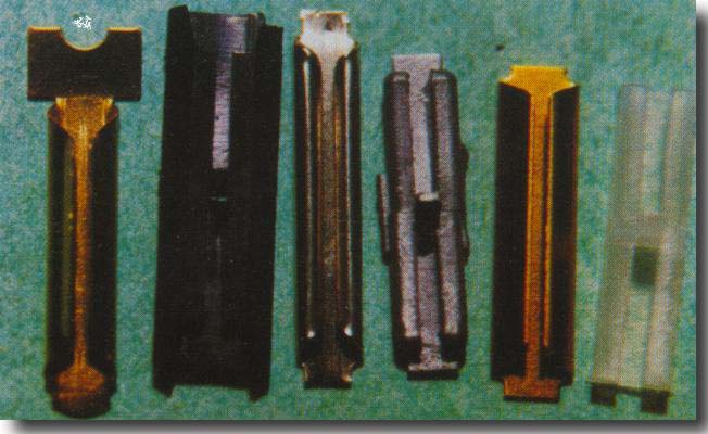 De gauche à droite : Les éclisses Jouef, Roco, Fleischmann (à chaque fois, les métalliques puis les isolantes)