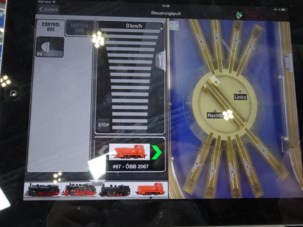 On vous présente une centrale non aboutie, d'ailleurs même jusqu'au desing dont on s'empresse de vous dire qu'il n'est pas définitif et pourcause il parait que ce rale dure puisque les boutons latéraux ont disparus. Pensez donc ici place à l'écran tactile insuitif à la sauce smartphone vous savez avec l'écarté index/pouce, et avec la virgule de l'index pour passer à un autre écran. 32 fonctions pour locomotives sont proposées qui dit mieux mais pourquoi ?