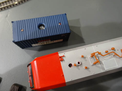 Alors comment cela se passe. Un emettteur est installé par convoi circulant sur le réseaui celui ci peut etre installé dans un container sur un wagon ou dans une loco. Bien sur pour gerer le tout en digital simple un décodeur de la marque de son choix est à installer dans la machine. L'emetteur qui permet de situer le convoi sur le reseau puisqu'en contact avec la voie (il y est relié via les essieux) emet des ondes pour se faire un trou de 4 mm mini doit etre réalisé sur le container ou la loco juste au dessue de l'émetteur.